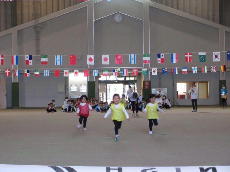 10月7日(土)運動会がありました。元気よくかけっこからスタートし、乳児組さんは大好きなお家の方と一緒に親子競技に参加しました。幼児組の子どもたちは、障害物競走や縦割りの玉入れ合戦で張り切っている姿を皆に見せてくれました。音楽に合わせてのマスゲームも見事でした。最後はスピード感たっぷりの年長組のリレーで盛り上がりました。