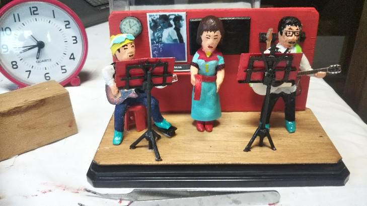 25日は仕事お休みでしたが、人形つくりに没頭してました。この人形はボーカルしてたねこちゃんの記念に制作したものです。2018年5月に結成したミックスジャムは3人(ヤス+ネコ+スー)とアドバイザーの兄(無花果堂)4人で月二回、我が家で練習・・・開始は私とスーさんは仕事終了してから集まるので夜7時から・・お茶しながら世間話が始まり、ギター始めるころは2時間経っていることもある、そこから練習して11時くらいまで・・時には深夜12時近くになることも・・ボーカルネコちゃんは昔コーラスやっていて声がきれい、高音もよく出るから大事なメンバー、しかし主婦ですから・・だんな置いてそんな時間までと言ったりしてましたが・・子育てが終わり、還暦も過ぎて自由な時間ができ、思えば好きだった歌が歌えることに・喜び、そして生きがいを感じたいうておりました・・2018年、19年10月に”まどか風呂コン”、2020年10月ペンション”アミティエ”で発表と順調に音楽楽しんでましたが、2020年末からコロナ渦で練習は中断した矢先、体調崩したというんでネコさんはお休みしてました、必ず復帰するからというて3年、先月に亡くなったと聞き愕然です、しかもがん闘病だったと、親戚、友人にも病名を告げずにひたすら闘病していたのですね・・昨日人形もって線香あげに行きました・・11月3日15時から川西町温泉施設”まどか”で追悼コンサートします・・ご冥福を祈る