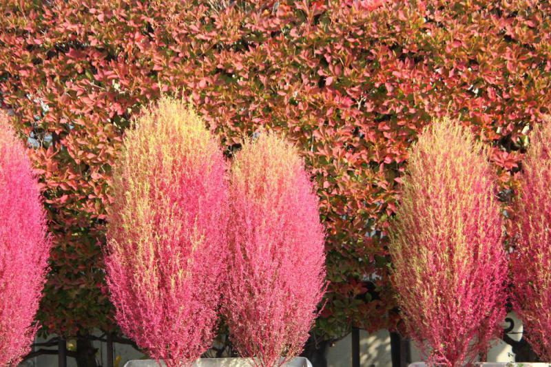 ●暑い暑いと言っていたことがウソのようにあっという間に気温が低くなり玄関前の「ドウタン」と「コキア」が紅く色づいてきました 秋になって気温が下がると光合成が行われにくくなり植物のしくみが作用して色が付くのだそうです 紅葉は1日の最低気温が8℃以下になると始まって5〜6℃以下になるとさらに紅葉が進むといわれています これから山は紅葉を纏い秋の装いとなってきます