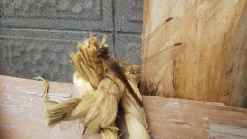 昨日雪囲い最中、縄にとりついたトンボ、もう飛ぶ力が弱って、触っても飛びませんでした。初夏は高地でわんさか見えるトンボ、平地が涼しくなると高地から平地へ移動し、群れを成してましたが、もうまれにみるくらいになりました。産卵を終えると一生を終えます。