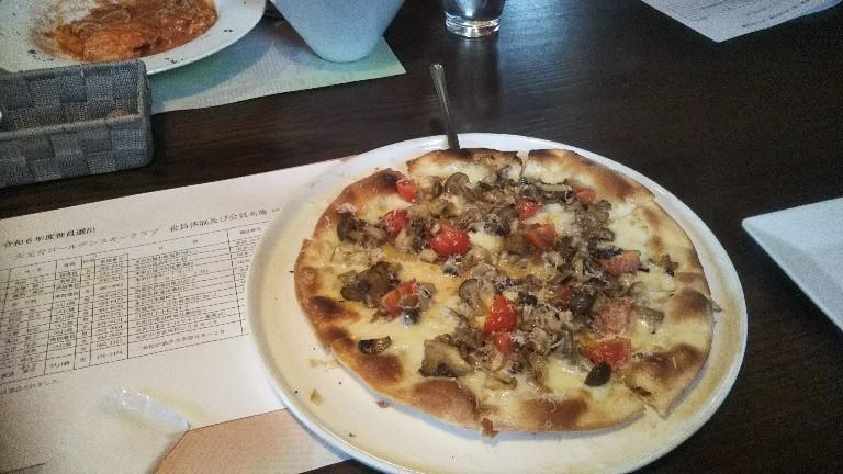 一昨日土曜昼、所属するスキークラブの総会でした、総会はランチしながらというわけで、米沢市窪田にあるパスタとピザの店に、市内ではなく郊外の田んぼの中にあるお店、ピザは窯で焼くらしくおすすめとなっている、パスタは種類は多くないけど、魚介系が多かったかな、私はピザ注文してみましたが一人では多かったような、でもおいしかった、パスタも楽しむなら、だれかとパスタと半々でがいいかもですね、前菜サラダにスープ+コーヒーつけて2340円でした・・