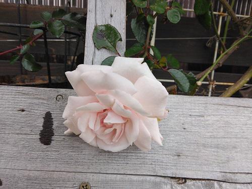 今日も、雨が降ったり止んだりでじーじは庭仕事も出来ず・・・ばーばも葉ボタンの寄せ植え残っていて早く終わりにしたいのですが、毎日寒いですー もう冬も目の前に。庭をグル〜と回っても、もうなんにもありませ〜ん!もうネタ切れデス・・・ でも、やはり主役は『バラ庭』!!!トップ写真に、けなげに頑張っているバラに入れ替えて見ました。こんな感じもいいかも? 今日のバラは。。。 “ニュードーン” 雪囲いにあごを乗っけて寒い〜?   ばーばの趣味の紹介は。。。 先日、11月のアレンジメント教室へ。今年は、花材に合わせて参加しています。11月はクリスマスアレンジなので行ってきました(^^)今回のテーマは『雪降る銀のもりのクリスマスフラワーアレンジメント』シルバーグリーンを使ってアレンジメントですが、器は「タルト型」で、なるほどね。。。おまけはサンタさん(グリーンのサンカク帽子)を作って一緒に乗っけて見ました(^^♪ これから、玄関のクリスマスの飾りつけもやらなくちゃね   ↓こちらは、10月のアレンジメントです〜「絵本からとびでる秋のお花のフラワーアレンジメント」ブック型の箱からお花がとびだすアレンジメントです。   山の方は、雪で白くなっています・・・  もう天気予報の晴れマークも、明日から木曜日まで。何とか残っている仕事終わりにしたいですね。