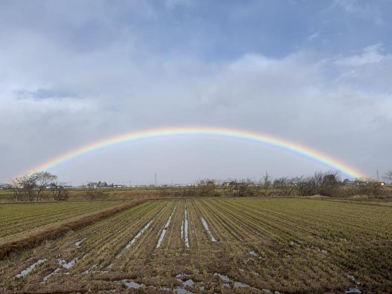 いよいよ冬の寒さがやってきた。何度か熱中症になりかけた猛暑の夏が、なつかしい。さて、今月のこまつ市を最後に、今年の屋外でのイベント販売がすべて終了しました。暑い時も寒い時も並んで下さり、お買い上げいただきまして本当に有難うございました。どうぞ、これからもよろしくお願いいたします。昨日、家の台所(今はキッチンというらしい^_^)から素晴らしい虹を見る事が出来た。目の前の田んぼが白くなるのも、もうすぐだ!