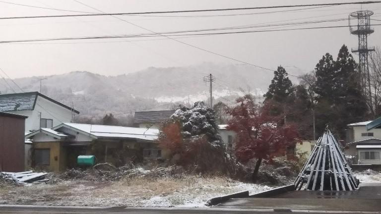 昨日朝、冷え込んでるなと外見ると、うっすらと雪でした・・とうとう平地に雪がふりました。米沢市内興譲館前バス停から斜平山みた写真です、この山は、北から御成山、羽山、愛宕山、笹野山、栃窪山の山々が連なる山塊で、米沢市近郊に位置し、古くから広く市民に親まれてきた里山です、このなでら山に3回雪が降ると平地に雪が降ると言われています・・・11月中頃山に雪・・あれから何回?だったかな