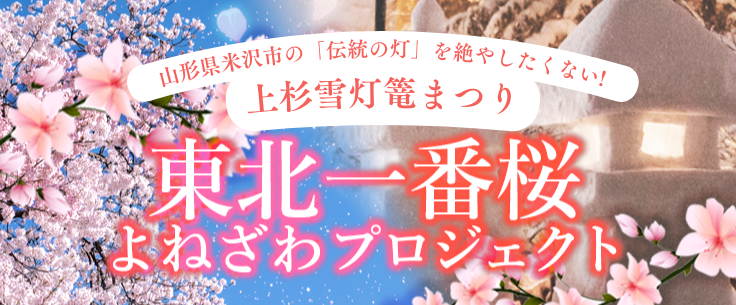 この冬の米沢を盛り上げるプロジェクトが始動しております!上杉神社周辺にて毎年開催されている「上杉雪灯篭まつり」は、47年の歴史を持つ、平和への祈りがルーツの地域の誇りとなっているおまつりです。しかしながら、「地域人口の減少」や「まつりの価値を伝えられていない」などの課題で、年々縮小し、遠くない将来、まつりの継続が今後困難になる可能性があります。そんなのは嫌だ!伝統の灯を絶やしたくない!ということで、地域の伝統を次世代に繋ぎ、地域の魅力をさらに磨き上げるために、このたび地域の団体、地域の学生、地域外の社会人が一緒になって「東北一番桜よねざわプロジェクト」が立ち上がりました。その肝となる施策として、冬に満開の桜が咲いている風景を作りだす「桜ライトアップ」をしたいと思っています!これを実現するため、12/14(木)よりクラウドファンディングに挑戦しています!!クラファンURL:https://readyfor.jp/projects/133578地域の皆様と一緒に、伝統を守りつつ、若い世代にも愛されるまつりとなりますように!国内外にその魅力が伝わりますように、ご協力よろしくお願いいたします!ぜひ冬の地域を一緒に盛り上げてください!!応援をお願いいたします!詳細はこちら↓メディア掲載記事https://news.yahoo.co.jp/articles/1c98ee68ff26f3bb2ed346f9d595cf61e0195aa7」 ■クラファンサイトのURL:https://readyfor.jp/projects/133578