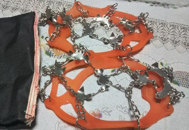 一昨日、山友さんより、簡易アイゼンもらった・・・冬山はしないと言ってあるのですが、春先天気いいなら吾妻の樹氷とてもいいから、行きましょとのことですね・・月山登った時リフトから少しいったとこに雪渓残っていたから・・場所によっては簡易アイゼン必要ですよね・・。アイゼンとは、氷や氷化した雪の上を歩く際に滑り止めとして靴底に装着する、金属製の爪が付いた登山用具のことです。由来はドイツ語のシュタイクアイゼン(Steigeisen)の「登る(steigen)」と「鉄(Eisen)」からきています。