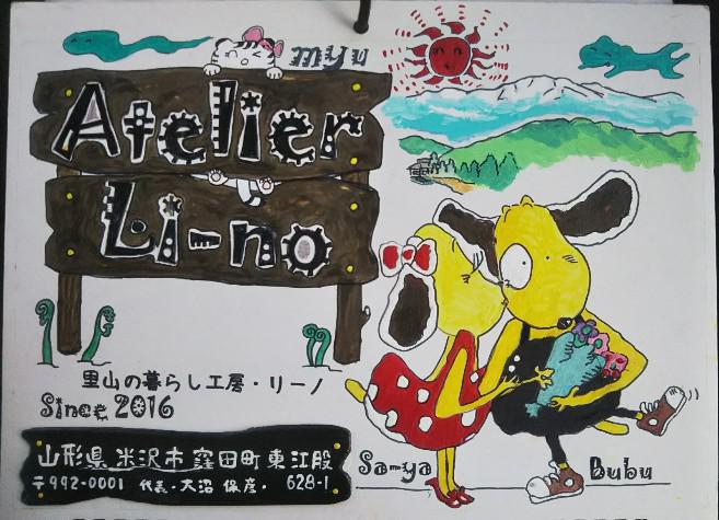 初孫の莉乃(2012年生まれ)、名前の由来はハワイ語で(lino)光る、輝くという意味、この他には、編む、織る、結びつくという意味がある、都会生活40年、故郷置賜での農的暮らしを夢見て、山形県飯豊町中津川に移住しホームページを開設したのが2016年、アトリエの名につけたのが初孫の名から”リーノ”と付けました、そして二番目の孫のあだ名『Bubu(ぶぶ)』3番目の孫の名前”咲弥・さや”から『Saーya』として2016年看板製作、あれから中津川から米沢市に再度、移り住んだのが2017年であっという間に6年が過ぎました・・その間に4番目の孫”実結”が生まれました・・看板に”みゆ”が入ってないのでネコの『Myu』を看板キャラに追加しました・・6年ぶりに看板塗りなおし修正した・・