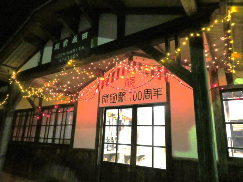 今月10日からイルミネーションを点灯させてから、不思議なことが続いている。最初に気づいたのは、車寄せに設置したラインが早朝から点灯していたのを見た時である。日中は自然光に紛れて気づかなかったが、一日中点いていたのである。「タイマーの設定を間違えたかな」と思い確認に行った。するとタイマー器が「常灯」になっている。「認知が進んだかな」などと思いながら、セットを仕直して帰って来た。  しばらくして、今度は同じラインが全く点かなくなっている。「変だなぁ」と思って確認に行くと、点灯時間を設定する部分が解除されている。ここまで来ると、ようやく事の真相が見えて来た。  古い家には座敷童子が棲んでいて、夜な夜な遊びに出て来るそうである。古い駅舎にも駅舎童子が棲んでいて、電飾で遊んでいるのだろうか。電飾が好きでいつも点灯していて欲しいと思っているのだろうか。座敷童子を見た人は幸せになるといい、その家は繁栄するともいう。駅舎童子もそうあって欲しいものだ。そして何よりも、器物損壊などの問題にならないように節度をもって駅を利用してくれることを願っている。