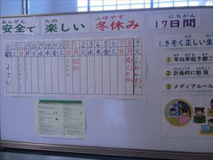 19日の火曜朝会では、まもなく始まる冬休みのくらし方について、担当の先生からお話がありました。今日も火事のニュースがありました。冬期間は暖房などで「火」を使うことが多くなります。決して火のいたずらなどはしません。「雪」の事故にも気をつけなければなりません。23日からは年末・年始休業です。元気に良い年をお迎えください。そして、来年また会いましょう。