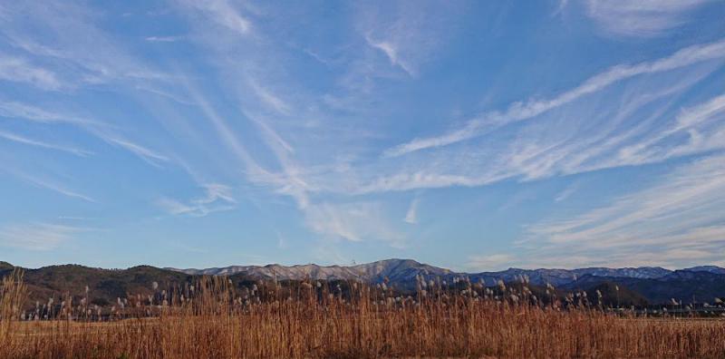 ●暖かな陽ざしに誘われて散歩に出かけました 陽が沈む前にこれが年末の空かと思われるような青空とスジ雲が筆で描いたようにうっすらと観ることができました 雪が降らないということは冬でもこんな風景が見れることにうれしくなりました