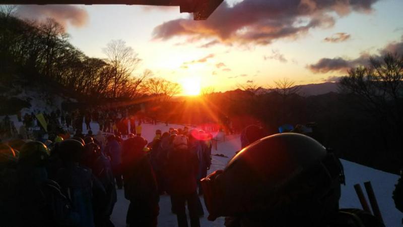遅ればせながら、新年あけおめです。年末から昨日まで軽井沢プリンススキー場におりましてスキーイントラアルバイトしてました。・・この間HPはお休みしてましたがまた再開です、何気に見に来ていただいてる方々やめてはいませんので今年もよろしくです。今年も昨年に続き、軽井沢プリンススキー場の1155メートル山頂から初日の出を見るイベント参加です。晴天に恵まれ、6時56分頃の山頂からの日の出、そのあと、抽選会などあり7:30頃より山頂からの滑走開始となる・・・パトロールがゲート開いて滑走です・怪我無く滑れますようにと祈りつつ初日の出初滑走しました・・