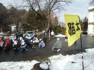 元日に起こった能登半島地震では家屋倒壊とともに火災が発生し被害が広がってしまいました。29年前の阪神淡路大震災も1月、13年前の東日本大震災も3月と冬期間の地震と火災でした。今日は冬期間積雪時の避難訓練を行いました。積雪は少なくて非常口は全部使うことができましたが、大雪の場合にはふさがることも考えられます。雪は少ないけれど日陰の路面はまだ凍っているところもありました。冬期間は注意すべき点が多くなります。しっかりと落ち着いて避難することができました。グラウンドの雪は日なたには全くありません。日陰には低学年がスキーの練習をした後がわずかに残っているだけでした。
