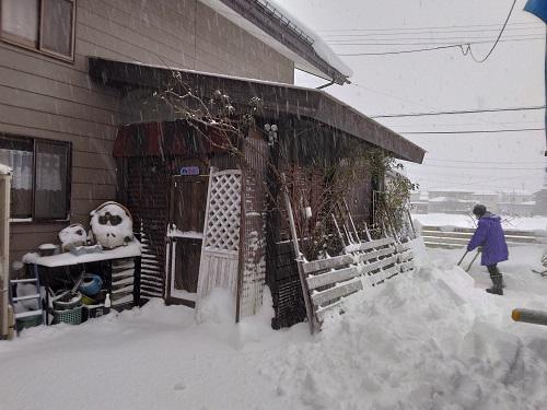 (ブログ休み中の記録、回想で書いています) 1/26も朝から雪、一晩で26cmから32cmの積雪深!じーじは雪降る中除雪、下屋の雪もなでこけて大変な作業です。少しは運動になったかな?でも、寒いので高齢者は辛いですね・・・ ↓家の前は、一応消雪にしているのでだいぶ楽です。 午後の庭の風景は・・・ 1/27は。。。 昨日夕方36cmから、今朝は47cmと一晩で11cmも積もりました!雪も止んで、じーじは朝のコーヒータイムの後、散歩へ・・・ ↓北の裏庭は・・・昼には、41cmと積雪もぐっと減りました! 1/28には、ようやく小降りの天気になってきました・・・ 3/26最後に。。。もう3月も終わろうとしているのに、長々と回想ブログに、お付き合いいただきありがとうございます。いつまで続くの?(スミマセン) 今月でばーばの冬休みブログを終わりにしますのでもう少しお付き合いくださいね(^_^)4月からは、いつものブログに戻る予定ですが異常気象で春の話題が書けるか心配ですね・・・
