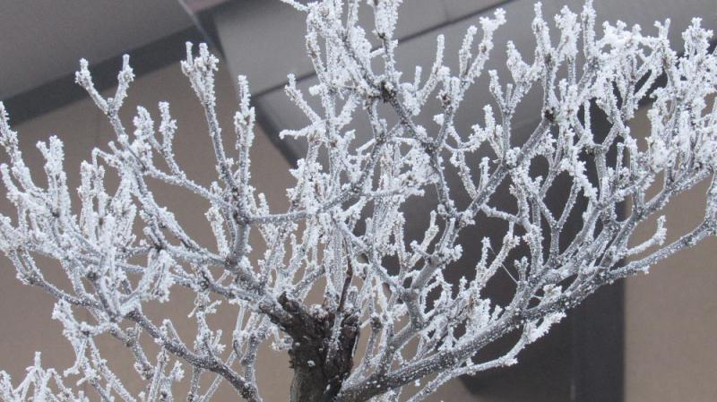 ●花は花でも氷の花です 今朝の外の気温が氷点下8度ととても寒い一日のスタートです 木々や草は白い花が咲いたように霧氷をみることができました 久しぶりの寒い朝ですが雪がないだけにありがたいと感じる1月の終わりです