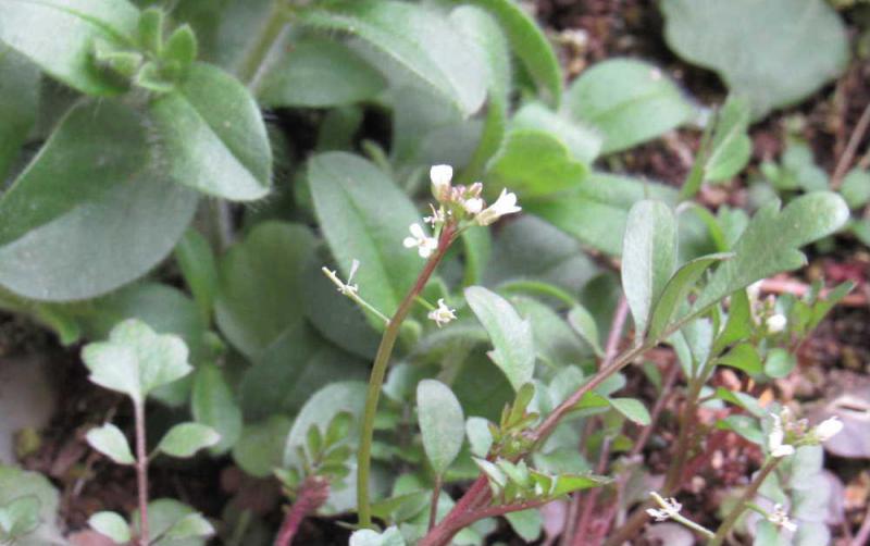 ●子どもの頃にナズナと呼んでいた草花に似ていますが「タネツケバナ」と呼ばれる雑草がたくさん生えています 1年草または越年草で高さは10センチメートルを超え3,40センチにもなります茎は暗紫色を帯びています 花期は早春から白い花弁を4枚つけています 幼い頃は味噌汁にさっとはなして食べた記憶があります 辛みがあるので独特の風味を生かして手早くさっと茹でてお浸しや和え物にして食べられるそうです クレソンのように肉料理と付け合わせてもよく からりと揚げて天ぷらにしても楽しめるとか 本当でしょうか そこら中に一面に自生しています