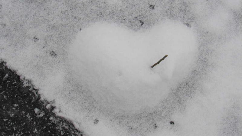 ●雪のハートマークが現れました 今朝も数センチの積雪がありうっすらと雪に覆われています 地面になんとハートマークの雪をみつけました どのようにしてできたのかわかりませんがもしかすると何かいいことがあるかもしれません ハートには何と矢が刺さっているようにみえます 誰かの心を射止めたのでしょうか