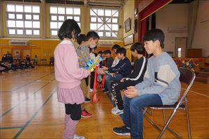 1年間致芳小学校のリーダーとして頑張ってきた6年生の皆さんを送る会を行いました。今年は1〜5年生からの「歌のプレゼント」もできました。ここ4年間感染予防を考えて控えてきたことです。ありがとうって言ったらみんなが笑ってる♪ありがとうの花が咲くよ♪素敵な歌、プレゼント、縦割り清掃の班でのゲームに6年生は、嬉しくて照れくさくてそして楽しくていい笑顔でした。