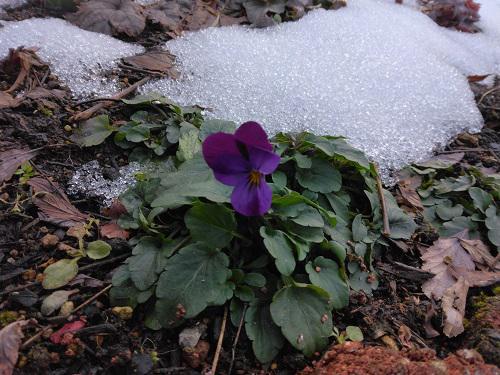 今朝は雪も少し増えマイナス気温でしたが、予報通り気温も上がり、じーじの庭仕事も進みました! (トップ写真)。。。雪解けも進み、庭の雪もだいぶ少なくなりました。夕方、庭を回っていたら雪が解けた所にこぼれダネの”ビオラ”咲いていました。春まぢかですねー ↓再度囲ったクリスマスローズのエリアの囲いも朝に外されていました。もう大丈夫ですよね? ↓クレマチスの芽も膨らんで来ました!去年は、きれいに咲けなかった“ヴィオレットチャーム”ですが、今年はいけそうですね。 午前中早い時間から張り切って外に出たじーじ。風が冷たくて一旦お茶休憩!昼近くには、穏やかな暖かい天気になったのでスピードアップ! 今年のバラの土替えには軽ーい土を使ってみました。初めて使う土なのでどうなるか心配な面もありますが移動しやすいのがいいですね。(じーじ)