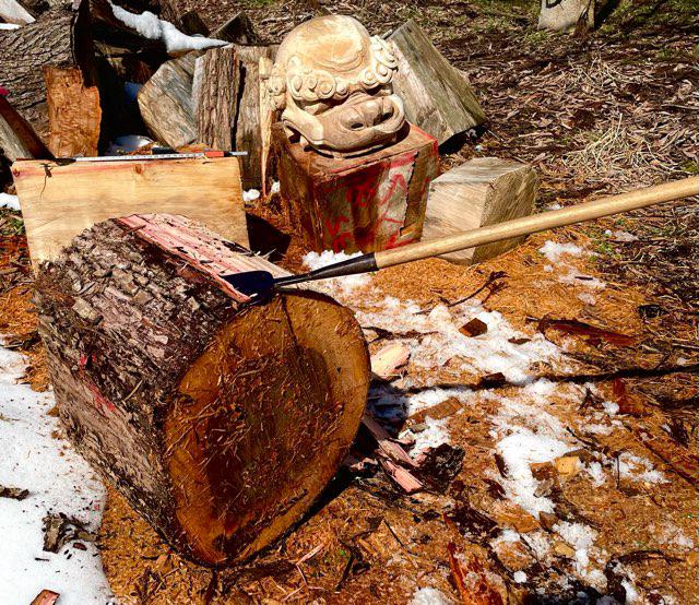 生木の時期は切れ目を入れ、ハツると簡単に割れる