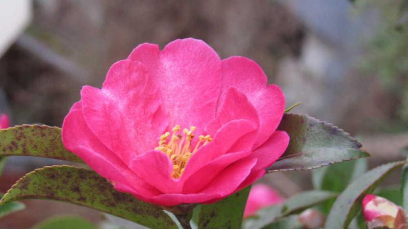 ●ツバキ?サザンカ?と思われる花が咲いていました サザンカは晩秋から初冬に咲く花でツバキは早春の花であることから「ツバキ」かなと思われます 咲く時期とともに特徴的な違いは散り方だそうです サザンカは花びらがパラパラと散るのに対しツバキは花の形をとどめたままに丸ごと落ちるのだそうです 観たことはないのですが大きな違いがあるようです 武士はツバキの花を嫌ったという説がありますがそれは花がポトリと落ちる様が首が落ちることを連想させたためといわれています