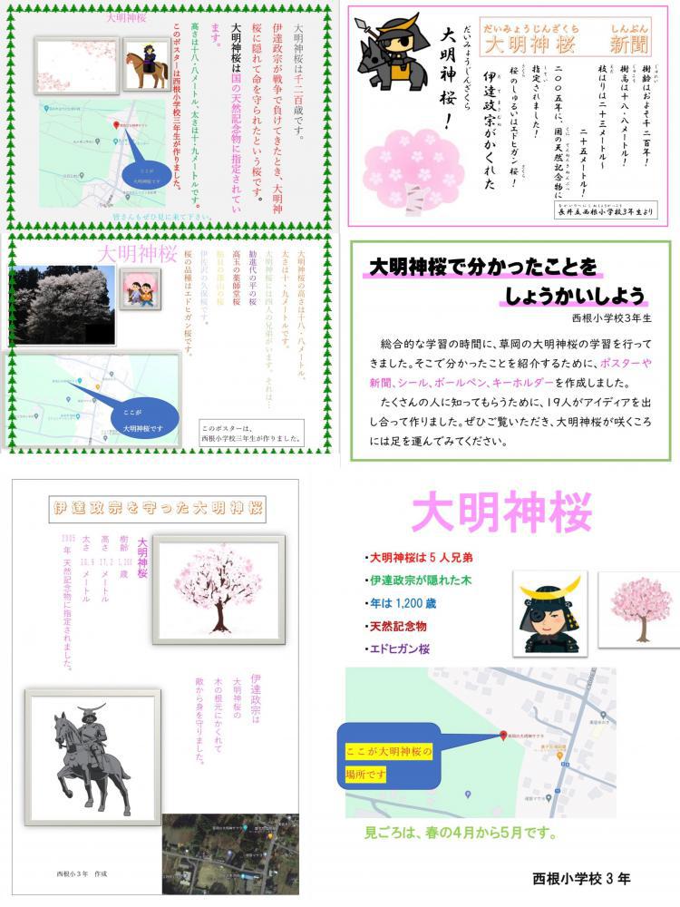 ●長井市立西根小学校3年生が制作!『草岡の大明神ザクラ』PRポスター・チラシ&グッズ