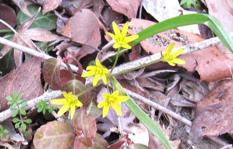 ●雪が消えた土手で小さなユリのような黄色の花が咲いていました 花の形や花びらが6枚で葉も「キバナノアマナ」に似ています 漢字で書くと「黄花甘菜」です 現在ではあまり見られなくなってきている植物の一つで貴重な種類だそうです この時期に咲いているこの花は本当に「キバナノアマナ」でしょうか