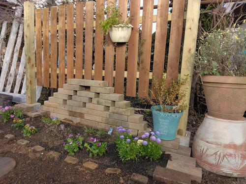 今年のじーじの工作物、第一弾が完成!冬の間に設計していた工作物、他はこれからが本番デス。 ↓最初はこんな感じでちょっと寂しかった・・・2/18にじーじ残っていたレンガを積んだだけのエリア 昨日は、ここからスタート。。。今年の工作物第一弾の完成です。フェンスは、昨日午前中にばーばが出かけている間に完成していました!ハヤー (トップ写真)今日午前中に花ショップポピーさんから花苗を購入して来て、じーじとばーばで共同作業〜 最後の仕上げは、ばーばで完成〜♪周辺にレンガを追加してグレードアップ! ↓その後に、鉢物や小物を少し飾って見ました。これが楽しみなんです〜後は、これから少しづつ楽しみながらですね。ばーばの庭遊びのエリアを一つ増やしてもらいました(^^)/ ↓今年の新人、カエルさんペアも置いてみました〜 昨日の庭は。。。ポピーさんから購入した“ユーホルビア”をミニロックガーデンのエリアにじーじが植栽してくれました! ↓今年購入した”ネモフィラ”。。。もう咲き始めています!去年は早く購入し失敗しましたが、今年は順調デス。