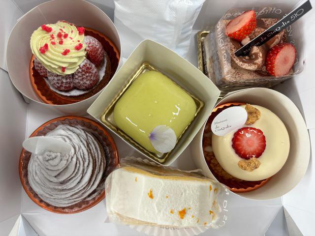 萬菊屋(0238-43-2066)のケーキ、いろいろ。頂戴しました。綺麗で、見ただけでテンション上がる〜〜。