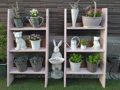 5/2に制作した『ラダー』ですが、塗装が未完成で終わり塗装の色で悩みましたが、ばーばのひらめきで決定!ちょうど購入したばかりの薄ピンクの塗料があったので使うことにしました。この色は、庭にマッチしていて好きな色合いです〜♪ ばーばの好みで決まりましたが、ラダーはばーばの物ではなくなりました。お休み場所で作業して、そのままガーデンルームの壁に立てかけたらいい感じになったので、この場所に置く事にしました。色んなものを集めてきて、とりあえず飾ってみましたがいかがでしょう? ↓テーブルと同じ色なので思った以上に、この場所にマッチしています。 ↓毎回UPしているバラ”シュルール”毎日違う色合いを見せてくれます!暑い日が続いて、蕾も直ぐに全開、、、 庭のブロック塀の角にある”ヤブデマリ”もう開花デス! 栗の枯れ木近くにある”ハクロニシキ”も秋にはバッサリと剪定していますが、今年は成長が早く、もうこんな感じです!