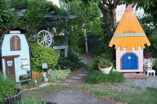 5/6の朝から、じーじは、ようやく今年一番の大物の工作物の制作開始です!さて、うまく完成できるでしょうか? 夕方には、屋根の部分がとりあえず完成!これからど〜うする、、、 5/10には、ここまで完成しました!我が庭の3番目の『フェイスハウス』です。冬から、設計図を書き始めて、何とかここまで。ノコギリだけを使っての苦心の作品です! 5/11朝食前から、朝仕事!それぞれの色をどうするか迷いましたがばーばの選択した色で決定!ホームセンターにも限られた色しかないので何カ所か回って購入したようです・・・ 10時前には、一応全部塗り終えました〜♪”やったー!” そして、最後の完成が(トップ写真)デス〜〜去年制作した二番目のフェイクハウスの脇に!桜の木に立てかけています。新たな撮影ポイントになればいいなぁ〜あとの仕上げは、ばーばにお任せください〜♪