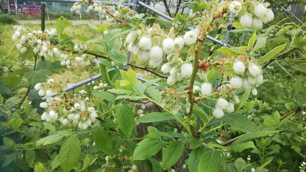 我が家の畑の花が咲くシリーズ、6日間家開けていただけで、随分と変わりよう・・ブルーベリーの花が満開になってました。ブルーベリーは酸性土壌を好み、一般的な培養土や他の植物が育つ庭で一緒に植えでもうまく育ちませんという、最適土壌酸度はpH4.3〜5.3だそうで、土壌がアルカリ性に傾いてくるので、ピートモスや鹿沼土を根元に乗せてマルチングするなどし、最適な酸度を保つようにしないといけんそうです、土壌酸度計を使って酸度管理をすると安心ですが、我が家は何もしておらん、ラズベリーにブルーベリー、ブラックベリー3種を植えている・・今年も生で、ジャムにと楽しみです。