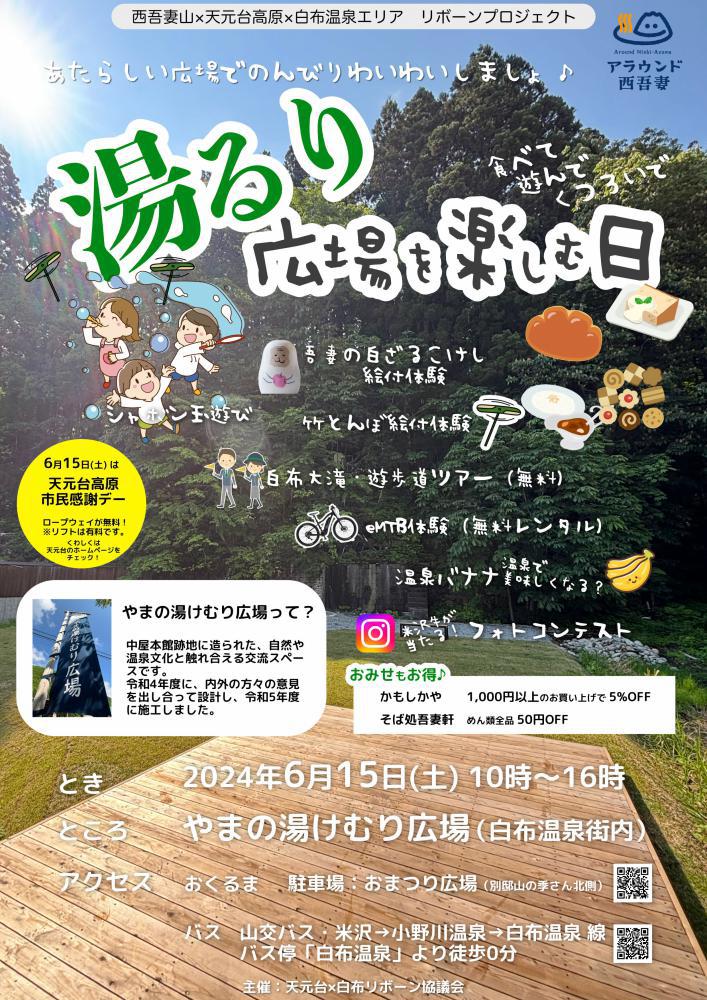 ●白布温泉やまの湯けむり広場”湯るり広場を楽しむ日” 6/15(土)開催!