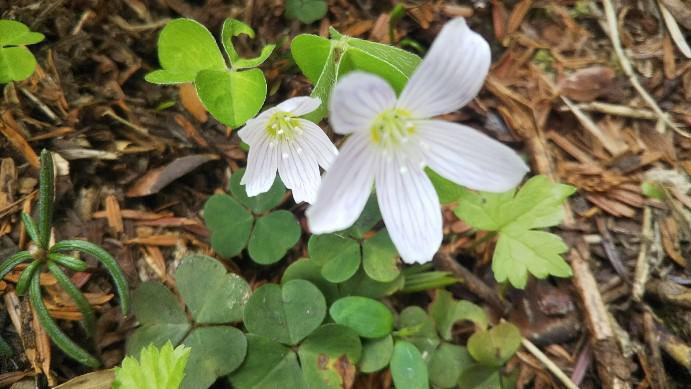 天元台高原第三リフト降り場”北望台”で撮った”コミヤマカタバミ”、亜高山帯の針葉樹林でみられる、高さは5~10pくらいの小さな多年草、葉がハート形で、花に紫色の筋が入る・・・我が実家の家紋は、"片喰に剣"という門である、片喰門はハートの葉を形どった家紋である、葉が夜に閉じた姿が葉が食いちぎられたように見えることから”片喰”とつけられたそうです。下の花開いていましたが、上の葉は折れて閉じてました・・天元台6月15日早朝に撮影したものです。