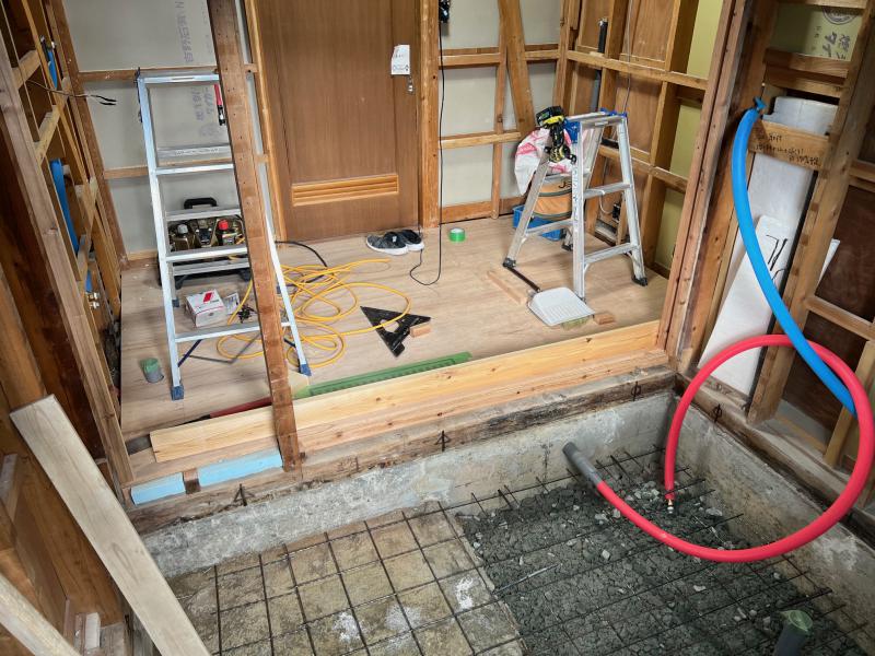 浴室床下はコンクリートを打設し、システムバスルーム施工へと進んでいきます!
