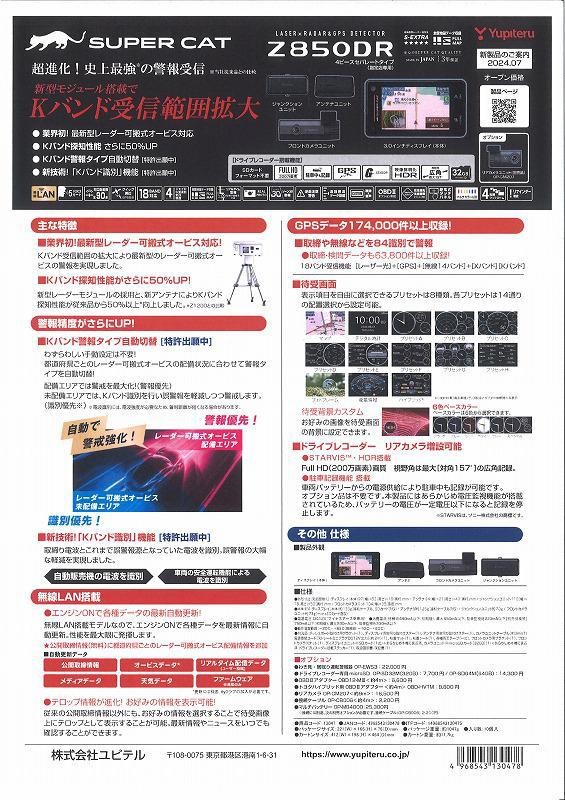 11日から販売されるユピテルの Z850R です ■■新商品:レーダー探知機指定店専用モデル ■■ 指定店専用モデル レーダー探知機&ドライブコーダー「Z850DR」を新発売致します。 ■業界初!最新型レーダー可搬式オービス対応! Kバンド受信範囲の拡大により最新型のレーダー可搬式オービスの警報を受信しました。 ■Kバンド警報タイプ自動切替 都道府県ごとのレーダー可搬式オービスの配備状況に合わせて警報タイプを自動切替。 配備エリアは警戒を最大化! 未配備エリアは、Kバンド識別を行い、誤警報を軽減しつつ警戒します。 ■新技術「Kバンド識別」機能 取締り電波とこれまで誤警報源となっていた電波を識別。 誤警報の大幅な軽減を実現しました。 ■ドライブレコーダー(フロントカメラユニット)はフォーマットフリーを採用し、microSDは32GBに容量アップ オプションリアカメラ(OP-CM207)はアナログ伝送ケーブルに変更し、9mの接続ケーブルとなります。・オプションリアカメラ OP-CM207 (ケーブル長 9m)・・・15,000円(税別)詳細はお問い合わせください フロントライン 0238-84-0506