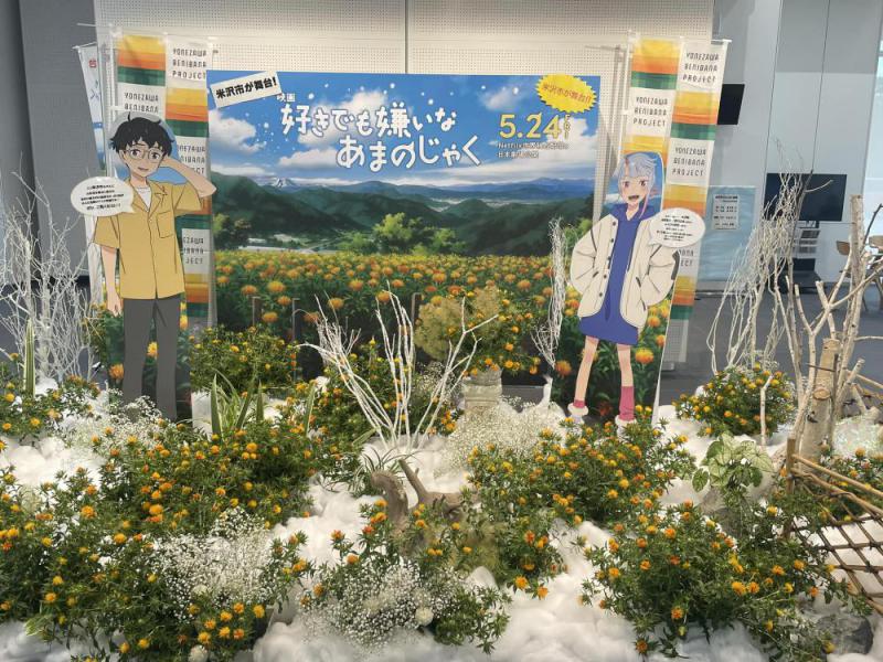 米沢市役所1階市民ホールにて、「米沢に咲く、紅花。」フラワーアレンジメント展示会を開催しています!映画「好きでも嫌いなあまのじゃく」とのコラボでキャラクターの八ツ瀬 柊とツムギのパネルを一緒に展示しています。フォトスポットを設置しておりますので、ぜひ「紅花」と「好きでも嫌いなあまのじゃく」の記念写真を撮りにお越しください!!◇開催期間 7月8日(月)〜18日(木)8:00〜17:00◇場 所 米沢市役所1階市民ホール