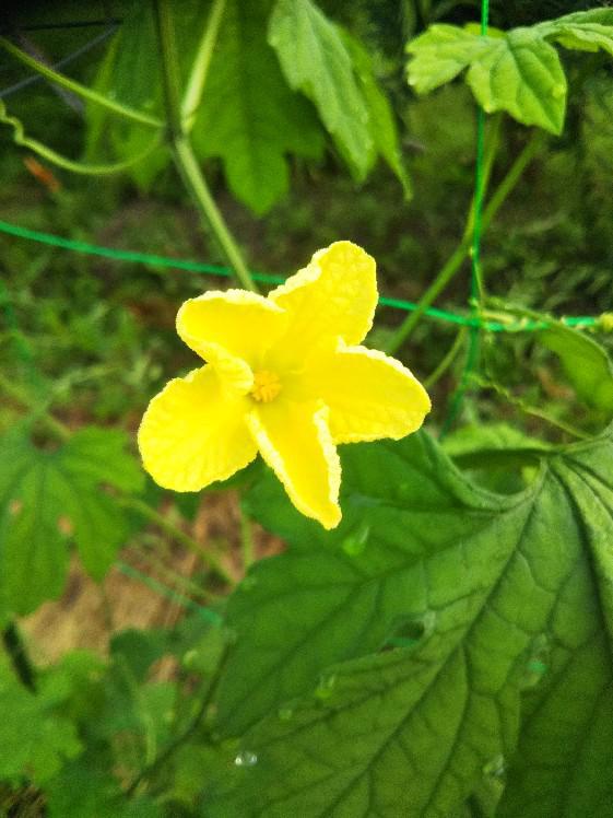 我が家のゴーヤの花が咲いてます、初めはなかなか成長しなかったのですが、ぐんぐんと伸びてきました・・。沖縄というとゴーヤというくらい有名ですね。苗の植えつけは気温が十分高くなってから行うといいということです。東京近辺なら早くても5月中旬以降ぐらい。我が家は5月中過ぎに植えました・・緑陰に使用されるように強い日差しにも負けず旺盛につるを伸ばして成長します。今年は、我が家の芝生・・お向かいさんや道路との目隠し用にブドウ棚に黒ネット掛けてましたが、ぶどうの蔓が絡みついたりして、用済み後ネット外しが大変なんで、今年からゴーヤで目隠し兼、日陰用に植えました。