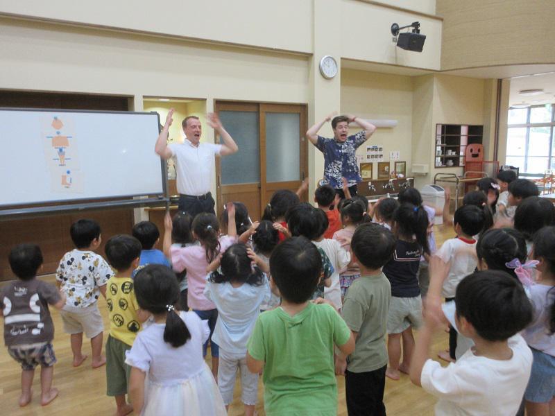 本日は「英語で遊ぼう」でした。2022年9月から米沢市国際交流員に着任された米国ワシントン州シアトル出身のシューベルト・トリートさんが離任されることになり、本日がトリートさんとの最後の「英語で遊ぼう」でした。幼児組さんが心を込めて作成したプレゼントをお渡しして2年間の感謝の気持ちを伝えました。トリートさんはこれからもお元気でご活躍頂きたいと思います。ありがとうございました。