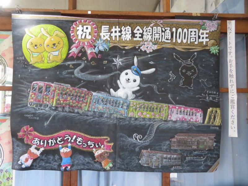 8月24日に紹介したカマ鉄オモシー組合さんのブログに、宮内駅の記事が投稿されていたので宮内駅に行ってみた。宮内駅に足を運ぶのは昨年のもっちぃ駅長のお別れ会以来になる。カマ鉄さんの情報どおり、待合室は全く違う雰囲気になっていた。はやぶさ色に塗装された新幹線の遊具があり、もっちぃ駅長がデザインされた缶バッチが入ったガチャガチャ、そしてラーメン大好き小泉さんの立ちパネルがある。  そして圧倒されたのが写真の黒板アートである。その出来栄えには驚かされた。作者を教えて欲しいと思うほどだ。この出来栄えは、ぜひとも宮内駅に行って見て欲しいと思う。と同時に、宮内駅のこうした情報を見落としていたのだろうか、と反省してしまった。先に紹介した「蚕桑・田んぼアート」のように、各駅の動きが沿線の中で交流し、共に応援しようという気持ちが醸成されることを期待したいものだ。    カマ鉄さんのブログはこちらから → 宮内駅の待合室にて - カマ鉄オモシー組合 (goo.ne.jp) 宮内駅には今も変わっていないものの沢山あります。こちらからどうぞ。 → 長井線リポート(28) 火の用心と指差確認:おらだの会 (samidare.jp) → 長井線リポート(29) 駅舎に残された思い:おらだの会 (samidare.jp) → 長井線リポート(30) 駅から街へ・街から駅へ:おらだの会 (samidare.jp)