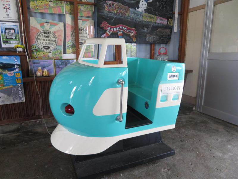 8月25日 レトロな駅舎と写真展を見に来ました。高校の先生の地元でもあり、すごく新鮮で楽しかったです。また今度来まーす! 気動車はいいなあ。8月27日(火) 今日はとても暑いです。風鈴の音を聞きながら電車を待つ時間は趣きがありました。カラフルな花結び柄の電車が可愛いです。【おらだの会】写真は気動車ではなく、宮内駅の待合室にある懐かしい乗用遊具。1回100円です。新幹線の遊具もいいなぁ。