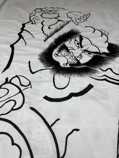 ねぷた絵のメイン画、墨入れ途中です。今週土曜日には赤中生有志が集まってくれます。2枚目、下絵、鉛筆画。3枚目、眉毛が綺麗。