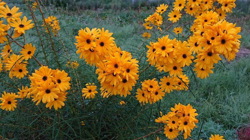 ●ひまわりに似たオレンジ色の可愛い花を見つけました 見た目は夏の花のようですがひまわりとは違って柳の葉のように細長い葉を付けていることから「ヤナギバヒマワリ」と付いたと言われているようです ヒマワリとはだいぶ趣を異にし秋の涼しくなると咲かせてくれる花で よく似たコスモスの後に涼しくなった庭を彩る花です