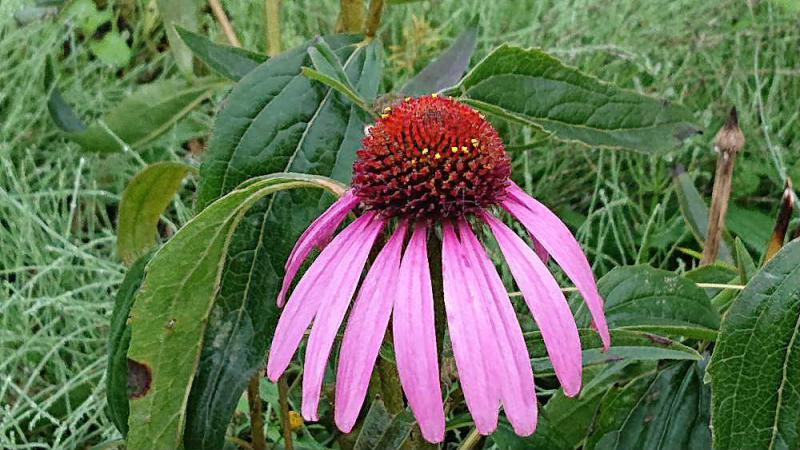 ●中央が盛り上がった花の周りを細長い紫色の花びらが垂れ下がった「ムラサキバレンギク」を散歩中にみつけました 花の名前についている「バレン」とは江戸時代に火消しがもっていた纏の周りの房のように垂れ下がっている細い飾りをいいますが この纏に似ていることから付いたものだったようです とても変わった形の花で寒くなっても咲いている息の長い花のようです