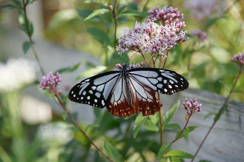 今朝はどんよりとした空でしたが、まもなく秋晴れに!先日10/7、旅するチョウ『アサギマダラ』の出会いをUPしましたが、この時は、じーじは出会えず残念! きょうは裏庭で鉢物の土の入れ替え作業をしていたじーじですが、ついに『アサギマダラ』との出会い!早速、カメラを持参しての撮影、、、さすが一眼レフカメラ!ばーばのスマホとは違いますね。 ↓拡大してみると、羽がかなり傷んでいるようです。 話は変わりますが… じーじの挑戦〜! 14日、マスターズ陸上の県大会に出場。足に故障を抱えながらも60m、100m、200mのクラス別で優勝してきました。練習もしないでよく走れるもんですね。今年で25年になりました。もう卒業なんて言ってます。頑張ったご褒美に立ち寄ってくれたのかな?写真も撮れて、ご満悦のじーじです。