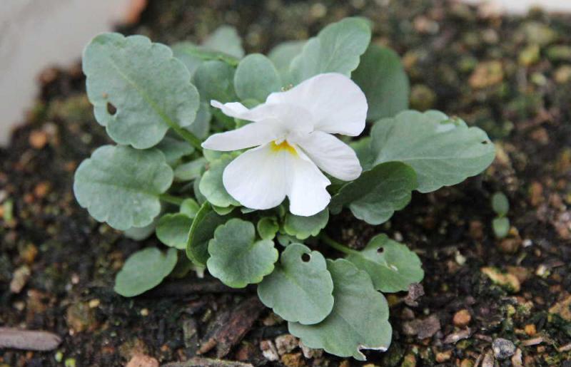 ●ようやく花が一輪さきました 今年採種したビオラを夏に種まきし芽が伸びてきましたのでプランターに植え替えしようやく咲きました 毎年種を取り初夏に咲かせていますがこれまでこの時期には1〜2輪しか咲いてくれません 店頭にはびっしりと咲いたバンジーやビオラが並んでいます 買うのもいいのですが種から育てるのも悪くはないです