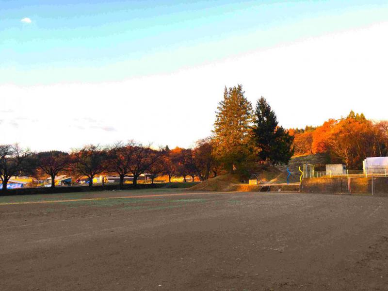 12月3日、朝の校舎周辺の様子です。学校周辺のみ霧が晴れていました。朝日に照らされる校舎や木々、添川方面に見える霧など、様々な情景が美しいと感じます。今後、雨や雪の予報が続くようですので、貴重な時間なのかもしれません。