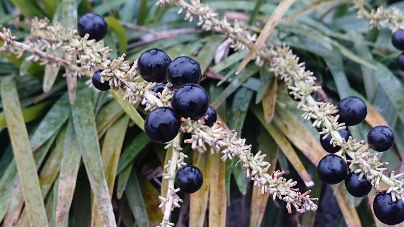 ●晴れ間をぬって散歩に出かけた 明日明後日と大雪の予報が出ていたので散歩できなくなるかもしれないと1時間ほど歩く中で雪のない道路そばに真っ黒に輝く実をみつけた 調べてみると「ヤブラン」の実であった この時期に草花の実を撮れうれしかった