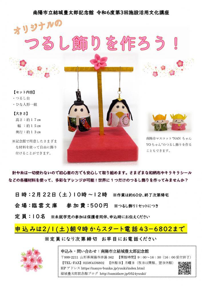 ●施設活用文化講座「オリジナルのつるし飾りを作ろう」開催のお知らせ