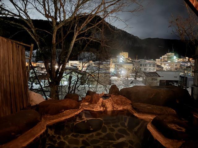 露天風呂からの夜景を撮るのは難しい。そんなことを自分で撮って思うんだけど、実際に感じるのは温泉街や夜空を眺めて入るのは画像では伝わらない、独特の空気感、雰囲気がある。冬は入るまで寒いですが、ぜひ、特別な空間を楽しんでほしい〜