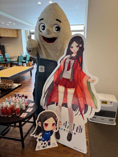 去年の12月にエフエムNCVのスポカフェでご一緒したこいきさんが、当館に遊びにきました。どうやら小野川温泉のかまくら体験をしに来られたみたいです。どんなときでもポーズを取ってくれるしゃべれる愉快なゆるキャラ、今後のさらなる活躍を応援しています〜